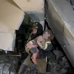 Video | Oekraïense hulpverleners halen kind onder puin vandaan na droneaanval.